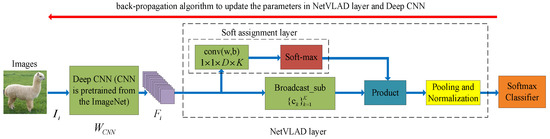The NetVLAD layer also uses the widely-used L2-normalization method and intra-normalization [41] method to obtain the final coding representation. The complete NetVLAD model for visual classification is illustrated in Figure 2.