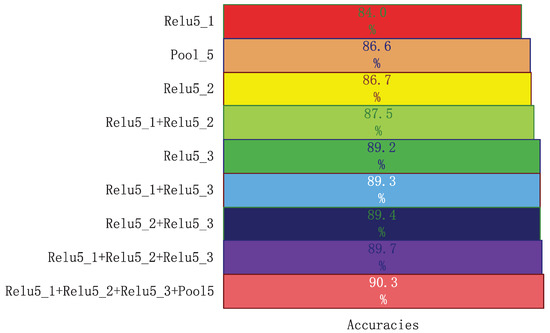 As shown in Figure 5, it is obvious to see that T should be a suitable value. If T is too small, such as , some contributing probabilities are disregarded, which will decrease the discrimination of the SASAC layer. If T is too big, such as , the unreliable probabilities will also reduce the discrimination of the SASAC layer. In this experimental result, when , the SAC-VLAD and the SAC-VLADNet get the best image classification performances. We can select optimal T for other datasets in a similar way. In a specific database experiment, we give the optimal T. For our M-SAC-VLADNet, T is set to the same value in each SAC-VLADNet layer .