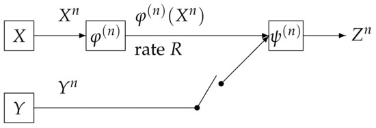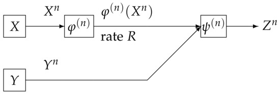 - Wyner, A.D.; Ziv, J. The rate-distortion function for source coding with side information at the decoder. IEEE Trans. Inf. Theory 1976, 22, 1–10. [Google Scholar] [CrossRef]