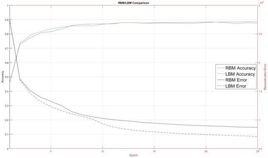 The LBM achieved a classification rate of 88.53 percent, seen in Figure 7, and was comparable to other RBM results on MNIST [27].