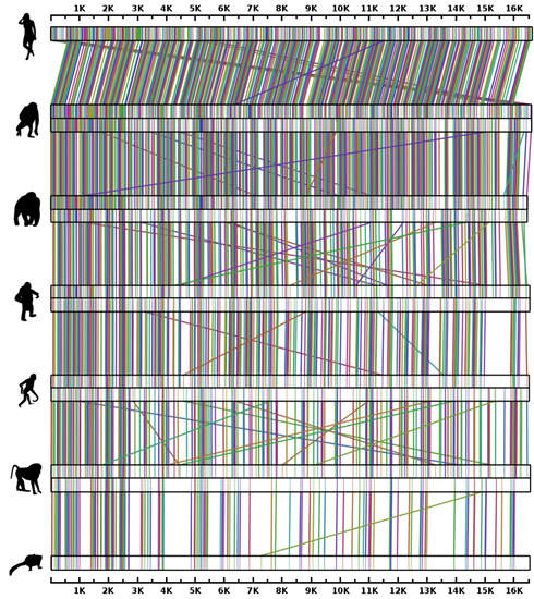 - Roos, C.; Zinner, D.; Kubatko, L.S.; Schwarz, C.; Yang, M.; Meyer, D.; Nash, S.D.; Xing, J.; Batzer, M.A.; Brameier, M.; et al. Nuclear versus mitochondrial DNA: Evidence for hybridization in colobine monkeys. BMC Evol. Biol. 2011, 11, 77. [Google Scholar] [CrossRef] [PubMed]
