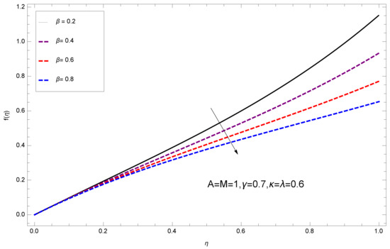 Here, is stream function such that . The prime indicates derivative w.r.t and the thickness of non-dimensional nanofluid film is represented by , where :