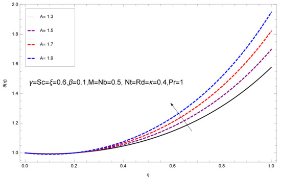 which is stretching, where is the stretching parameter. The surface temperature of the nanofluid is