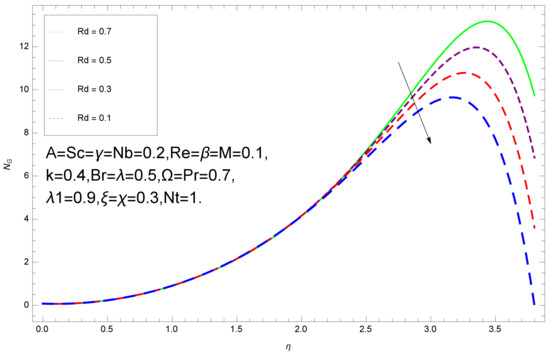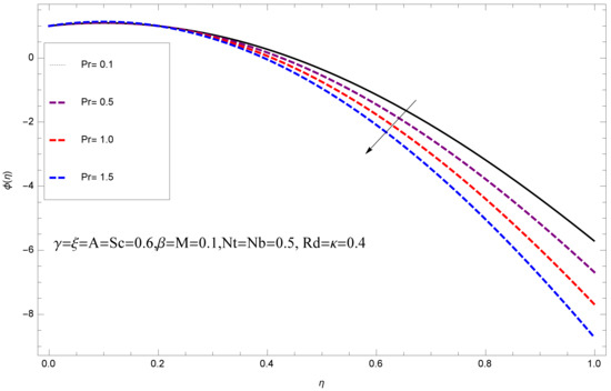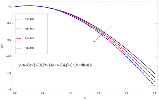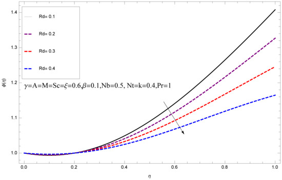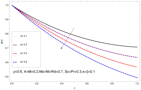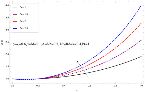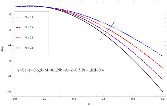 The non-dimensional parameters after simplification can be defined as is prandtl number, , is radiation parameter, is magnetic parameter, is unsteadiness parameter and Schmid number, is parameter of Brownian motion, is Thermophoretic parameter, is Stretching parameter, is Porosity parameter, and is Eyring–Powell fluid parameter.