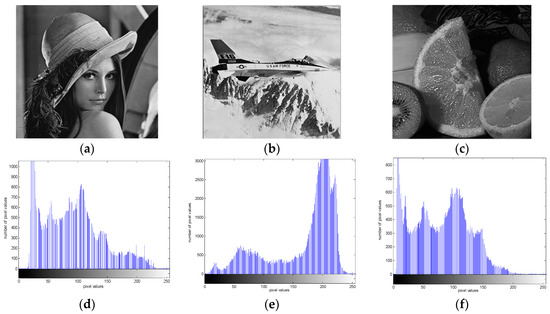 In this section, the Lena, fruits, and airplane gray images with a size of are encrypted using the above image encryption scheme based on self-synchronous chaotic stream cipher. The security analysis results of image encryption are shown below.