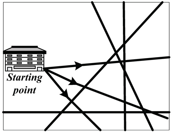 In the military supply road network, if there are supplies transported out from the point j but no supplies transported to this point, then we have , , and , . For the points like this, we identify them as starting points.