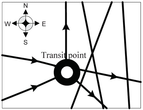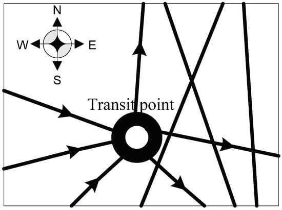 In the military supply road network, if there are military supplies transported in and out from the point j, then we have , , and , , . For the points like this, we define them as transit points.