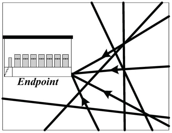 There are some similarities between the concealment measure equations of the starting point and the endpoint. Both of their transportations are directional. As a result, the concealment measure equation of the road sections that connect the endpoint is: