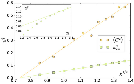 where the correction factor is the inverse relative difference in the density of the cold monomers in the cold and hot phase, which depends on the temperature asymmetry . The value of the correction factor for each temperature can be read out from the phase diagrams of density and number fraction (, with being the overal density of the phase ). As mentioned above and in Figure 9, itself depends on the system size. This dependence causes the factor to be L dependent and hence it is crucial to know it explicitly. Then, varying the system size L, one could extract the interfacial stiffness . Note that this can not be used to obtain the intrinsic width as this is convoluted with a by the constant c in (12) as pointed out in [26].