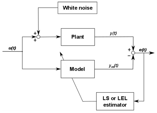 The scheme shown in Figure 2 presents the process of the plant model parameter estimation: we excite the system input using u(tf), and we collect data on its output y(tf).