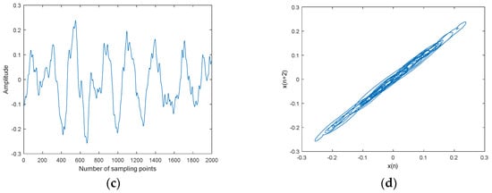 Lorenz noisy and denoised signals with different SNRs and their chaotic attractor trajectories are shown in Figure 10. As shown in Figure 10, denoised Lorenz signals and their chaotic attractor trajectories by CEEMDAN-MI-PE are close to Lorenz signal and its attractor trajectory, the denoised chaotic attractor trajectories are more smooth and regular.