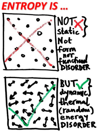 Entropy is related to thermal motion of a system microstructure, the latter gives rise to all thermal phenomena and related properties, namely, temperature, thermal or heat capacity, thermal energy and entropy, among others, see Figure 4. Due to conversion of thermal energy to other energy forms, such as mechanical work in heat engine, and also spontaneous and unavoidable dissipation of all other energy forms to thermal energy via so called heat generation, additional issues and sometimes confusions arise. However, entropy is a well-defined material system macro-property, precisely measured, and tabulated and/or correlated, for practical use in engineering and science. Entropy should be further reasoned, refined and explained for what it is, and not be misrepresented as something it might be or is not [11].