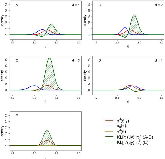 If is taken to be a reference posterior, this would implicitly support the choice of such that it is a reference prior as originally developed by Bernardo [], further developed by Berger and Bernardo, e.g., [], described in Bernardo and Smith [] and more formally worked out in Berger, Bernardo and Sun []. Reference priors are not the only possible choice for priors that convey in some sense minimal information or affect the information of the likelihood as weakly as possible []. An extensive overview can be found in Kass and Wasserman [] and some notable options are Jeffrey’s priors [,] and maximum entropy priors [] to which the reference priors reduce in specific cases [].