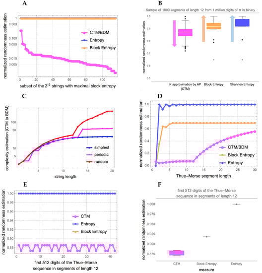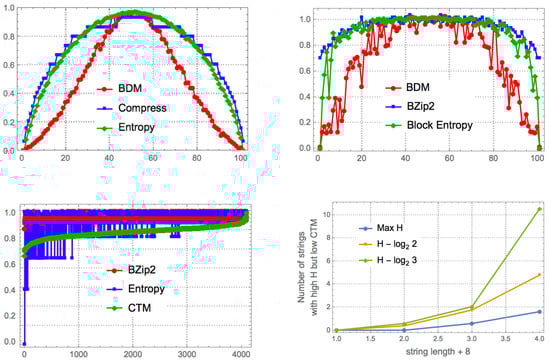 - Soler-Toscano, F.; Zenil, H.; Delahaye, J.P.; Gauvrit, N. Correspondence and Independence of Numerical Evaluations of Algorithmic Information Measures. Computability 2013, 2, 125–140. [Google Scholar]