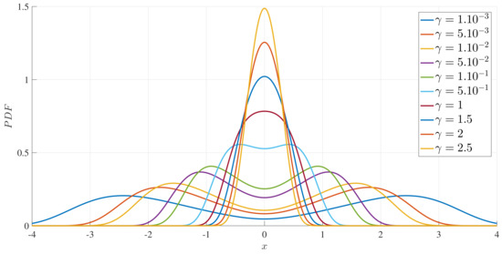 gives a unique real solution and two complex solutions which are complex conjugates. It is easy to see that the real solution of our interest corresponds to because is real. Therefore, as long as Equation (A3) holds, we have a bimodal PDF.