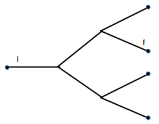 Such a diagram gives the probability to find a constituent subsystem fractal f at the third level of the initial fractal i. According to the diagrammatic rules, one has