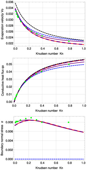 - Struchtrup, H.; Beckmann, A.; Rana, A.S.; Frezzotti, A. Evaporation boundary conditions for the R13 equations of rarefied gas dynamics. Phys. Fluids 2017, 29, 092004. [Google Scholar] [CrossRef]