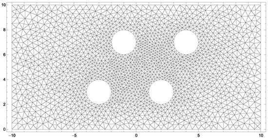 The system of interest for the two-dimensional, steady-state simulation is a channel with four evaporating cylinders, which is discretized as depicted in Figure 11.