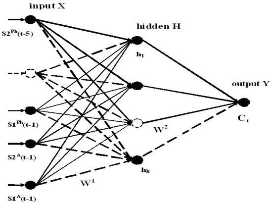 Figure 4. The first and third layers were referred to as the input and output layers, respectively. The second layer was referred to as the hidden layer. The neurons of each layer were shown by circles. The neurons of the previous layer were connected with the neurons of the next layer. The lines between the layers represented the weights that are applied to the outputs of each layer. The backpropagation technique [