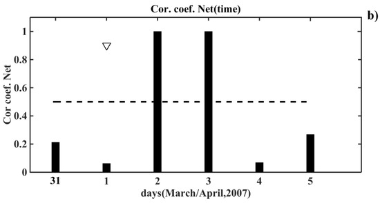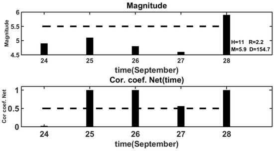 Figure 4 shows that the correlation coefficients were higher than the threshold value of 0.5, three days before the earthquake of 28 September, and on the very day of the earthquake.
