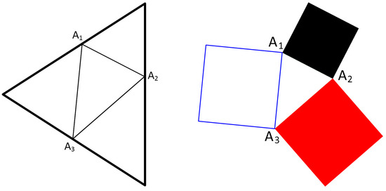 We call these squares the Triada of Malevich’s squares following [23,24,34,46,47]. The areas of the squares , , and are