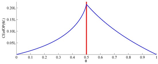 for with . According to the properties of conditional entropy (see Section 2.2 for details), attains its maximum when coincides with a change-point. Figure 2 demonstrates this for the time series from Figure 1.