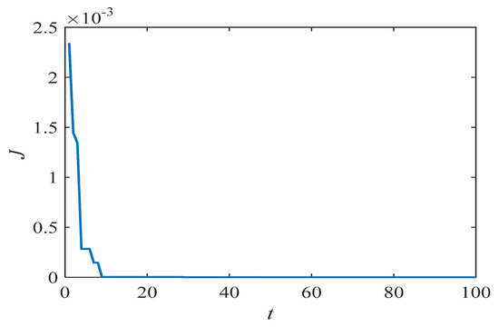 where J is the objective function or the identified error. and (k = 1, 2, ..., M) denote the state at the time of the original system and the identified system, respectively. This formulation constructs the parameter identification problem as a multidimensional optimization problem. The decision vector is the identified fractional order and the identified parameter . J is the objective function that needs to be minimized.