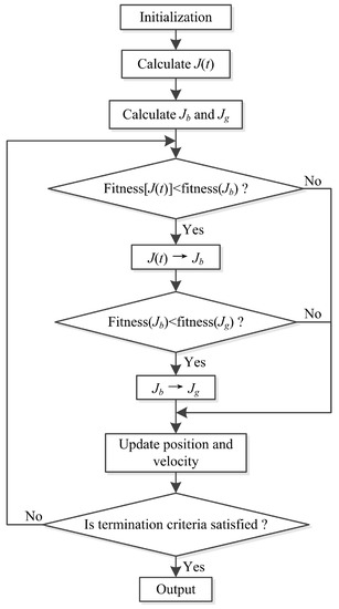 The PSO algorithm is inspired by swarm intelligence [34]. Due to its efficiency and robustness, PSO has already proven that it has better performance than the genetic algorithm (GA), ACO algorithm, and DE algorithm [35] for various optimization problems [36,37,38]. Indeed, many improvements can enhance the optimization effect of PSO, but the results of these efforts are still unsatisfactory in addressing many challenges, like the parameter identification problem. Therefore, an improved PSO algorithm called IPSO is proposed for parameter identification in this paper. To further improve the precision and convergence rate, we proposed a special inertia weight in the IPSO algorithm.