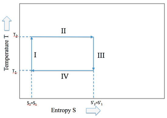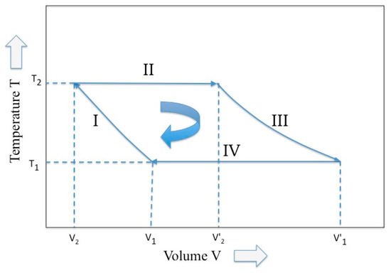 The Carnot cycle described by two variables, temperature and volume (elaborated from Reference [10]).