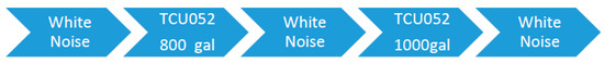 According to the experience of applying MSCE for SHM, the optimized template length m was set as 4 based on the characteristics of recorded time series [30]. However, inevitable fluctuation was occasionally observed on the calculated entropy curve, which makes the diagnosis of damage condition and location difficult. To verify the ability of CMSCE to provide accurate entropy values subject to a long template length, experimental data obtained from a shaking table test were first analyzed to compare the performance of MSCE and CMSCE in this section. The shaking table test with alternating spells of white noise and TCU052 earthquake was conducted on a two-bay three-story reinforced concrete (RC) structure, which is shown in Figure 2. The procedure is shown in Figure 3. The acceleration of each floor was measured for SHM. The entropy-based monitoring system was based on ambient vibration, which was simulated by white noise during the shaking table test. The acceleration response of the first white noise iteration was used to represent the healthy status of the RC structure; the acceleration responses of the second and third white noise iterations were considered as unknown conditions after 800 and 1000 gal earthquakes.
