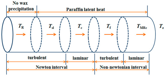 | Pipeline Transmission Temperature Region | Newton Turbulent Non-Wax Precipitation | Newton Turbulent Wax Precipitation | Non-Newton Turbulence | Whole Process of Crude Oil Pipeline Transportation |