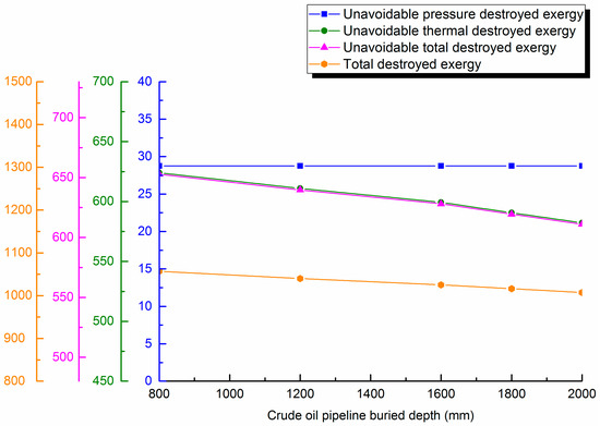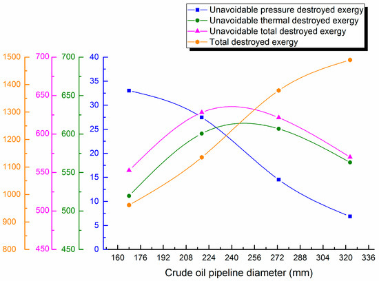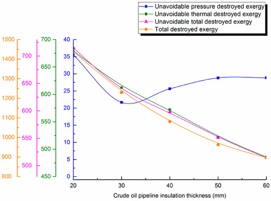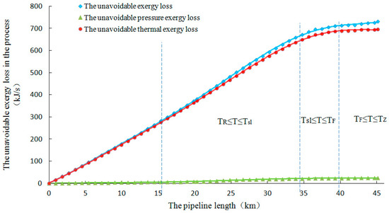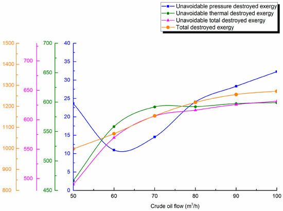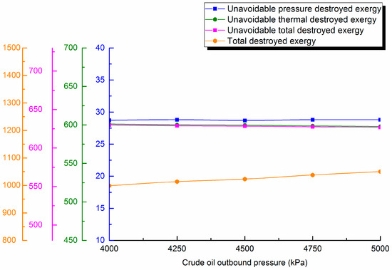 4.2. Calculation Results and Analysis of Unavoidable Destroyed Exergy