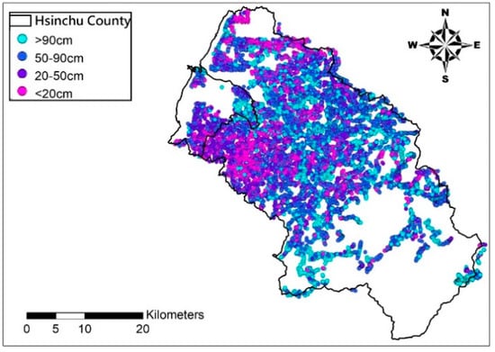 The accuracy of these two soil depth estimation models (LSSVM and SVR) is determined by comparing actual soil depth data. Acquire 80% of physiographic factor and soil depth data of the Hsinchu district to train both models, the remaining 20% soil depth data is used to assess accuracy of models, in which 10-fold cross validation is adopted.