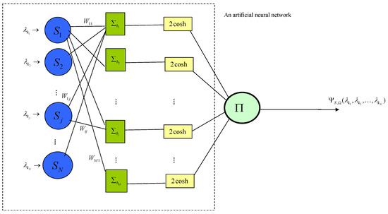 It is can be described by the following “quantum artificial neural network” (Figure 2) where , and are functions such that