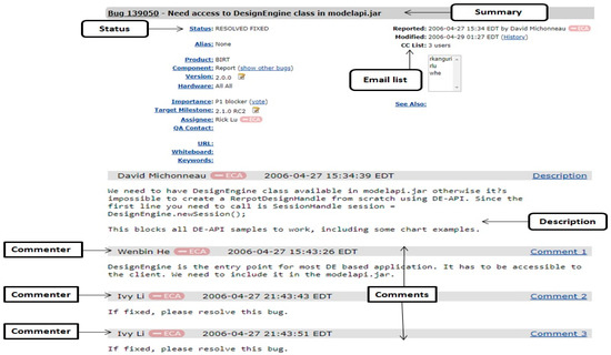 The summary attribute contains the textual description of bug reports. It plays the major role in predicting severityand priority of newly incoming bug reports. The comments are attached to the bug by users. The numbers of comments filed and counted are attached to a bug report. The textual description of user comments can affect the comprehensibility of a bug report.Therefore, it assists in fixing of a bug. Number of comments, and occurrences of terms, are the indicators of the software quality. Figure 1 shows a bug report of bug id 139050 of BIRT products of the Eclipse project.