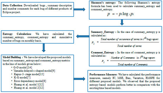 The summary and comment entropy is also a function of time. Consequently, the proposed models are alsopredicting the number of bugs in a given time window.The proposed models have been empirically validated on different products of Eclipse project. The performance of the proposed modelshave been validated using different performance measures, namely R2, bias, variation, mean squared error (MSE) and root mean squared prediction error (RMSPE).