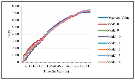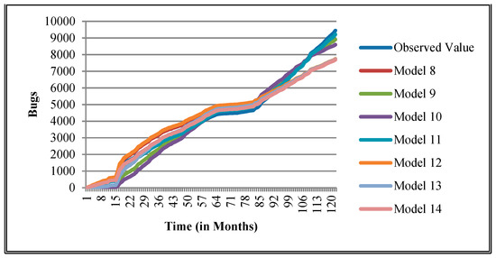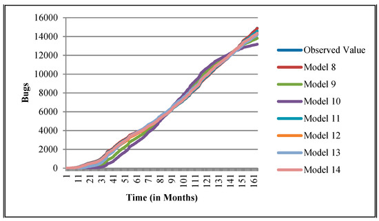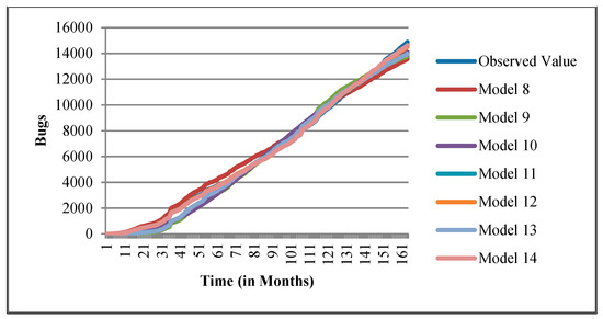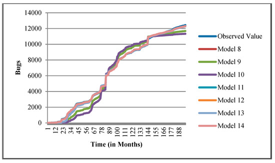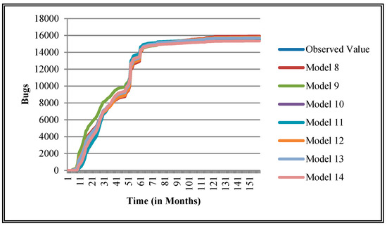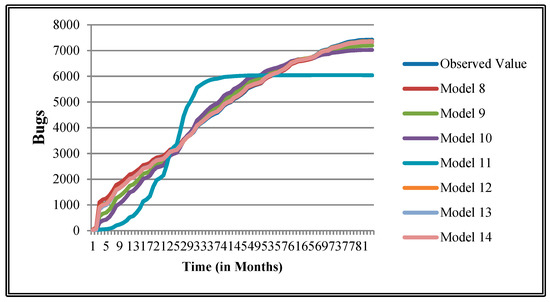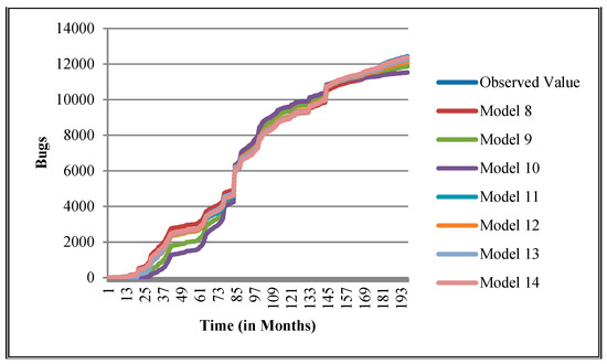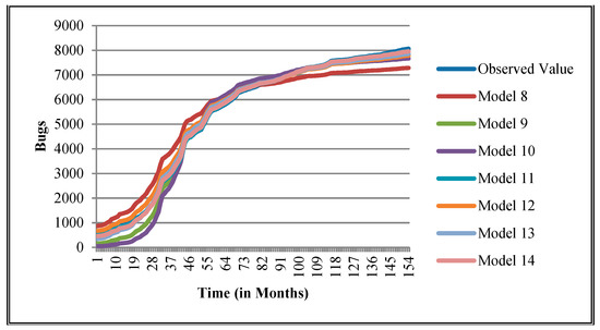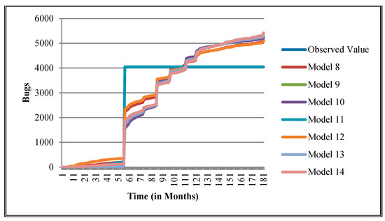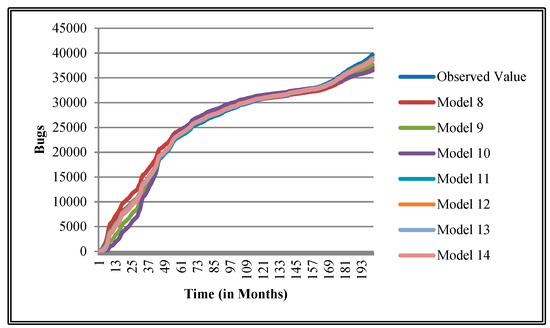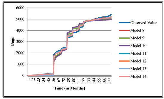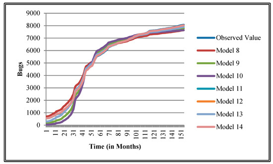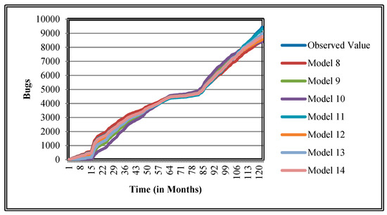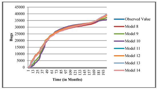 | Case 1 | Time vs. bugs | In this case, the software reliability growth models in [7,8,9,12,14,15] have been used to predict the potential bugs lying dormant in the software. |