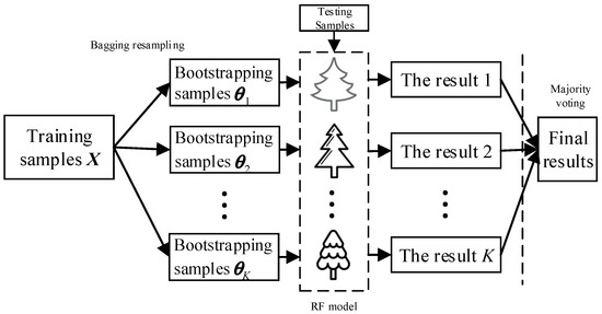 (1) Get Bootstrapping samples by Bagging method from the training set X. Specifically, the is obtained by random selection with replacement, where the sample sizes of and X are identical.
