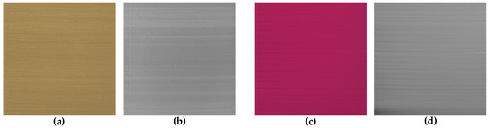 The most relevant preprocessing step was the application of the Contrast Limited Adaptive Histogram Equalization (CLAHE) [33] for balancing the distribution of brightness on the images representing the depth maps. These differences, similar to the effect on non-uniform lighting, originate from the placement of the scanned samples that were not always perfectly parallel to each other. Consequently, after scanning four samples at once, as illustrated in Figure 3, some of them may be represented by various depth ranges equivalent to different brightness values of depth map images. Some differences for the opposite corners of the scanned sample can be observed as well. It can also be noticed for both depth maps obtained for the left images shown in Figure 4 (i.e., green and brown samples).