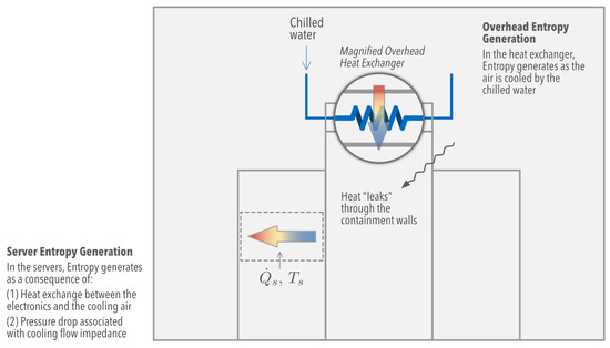 One consequence of the second law of thermodynamics is the concept of Entropy Generation, which quantifies loses (irreversibilities) that take place in a process, in this case being data center cooling (Figure 3). The processes considered in this work generate entropy mainly from three sources: