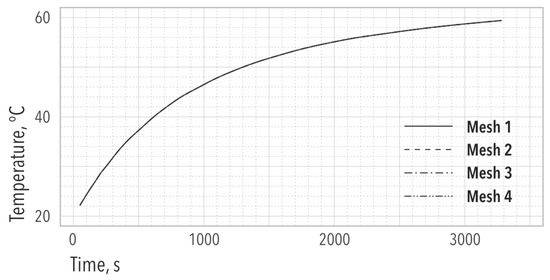 A mesh validation was obtained by comparing the server and the Airside Entropy Generation in four different meshes (Figure 4 and Table 1). Within the servers, Figure 4 shows that each of the four selected meshes can predict the temperature response with equal accuracy. This is also observed in Table 1 for the total Entropy Generation. Nonetheless, when considering the Airside, Table 1 shows that only Mesh 3 is able to capture the Entropy Generation with less than 3% error compared to the finest mesh. Therefore, Mesh 3 was chosen to carry out the numerical analysis.