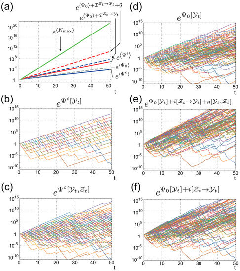 where and is the directed information [31]. Directed information is an extension of mutual information of two trajectories by considering the causal relationship between the trajectories. Similarly to transfer entropy, the directed information quantifies the causal dependency between two trajectories. Transfer entropy is related to the upper bound of the rate of the directed information [35]. Their integral version is illustrated numerically in Figure 5e,f. Since , we can immediately see that Equations (35) and (36) are equivalent to the detailed and average FRs, respectively, for the fitness with common sensing: