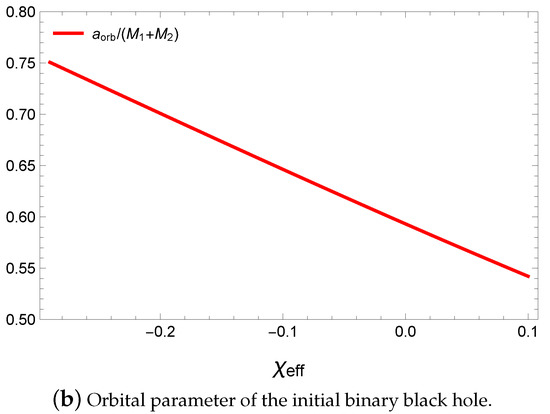 Here, we will investigate the effects of the orbital angular momentum during the coalescence of the binary black hole. The orbital angular momentum causes spiral motions of the black holes before coalescence. This can be more appropriately written as The orbital angular momentum is included in the total angular momentum of the black hole system and it makes similar contribution to the particle limit as the spin angular momentum does, as shown in Equation (43). Owing to the orbital angular momentum, the angular momentum of the final black hole is expected to increase because most of the spin angular momenta cancel each other in the LIGO observations, where the black holes have antiparallel alignment.