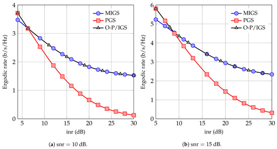 The ergodic rates of the PGS and the IGS users are, respectively,
