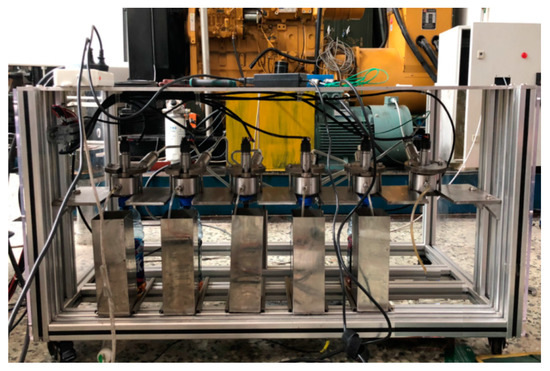 The picture of real high-pressure common rail experiment system is shown in Figure 10. The structure of this experiment system is the same as the real fuel injection system of 6K420LN-C31 diesel engine, which is made by China Yuchai factory. In this system, there are 6 injectors Bosch crin2 in total. The high-pressure pump is driven by an electric motor. The rail pressure close loop control and fuel injecting in turn are realized by ECU.