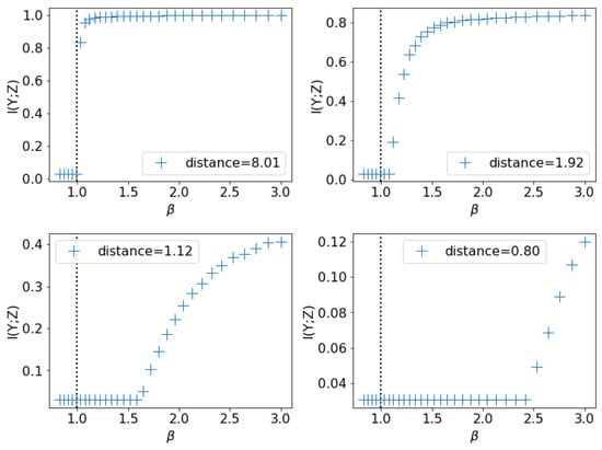 From the IB objective (Equation (1)) we see that when it will encourage which leads to a trivial representation Z that is independent of X, while when , it reduces to a maximum likelihood objective (e.g., in classification, it reduces to cross-entropy loss). Therefore, as we vary from 0 to , there must exist a point at which IB starts to learn a nontrivial representation where Z contains information about X.