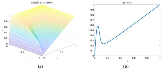 Such surface is shown in Figure 3a. Similar to the curve, q and r may be inverted sequentially. By analogy with the area under the curve, we can define an enclosed volume functional for the surface as well. In particular, we have the volume under the surface, V, given by
