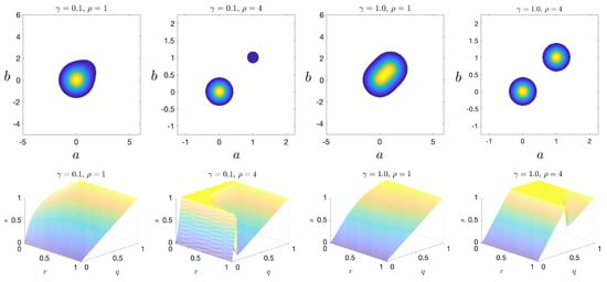 (top) Joint pdf plots of the bimodal scenario for various parameters; and (bottom) corresponding plots.