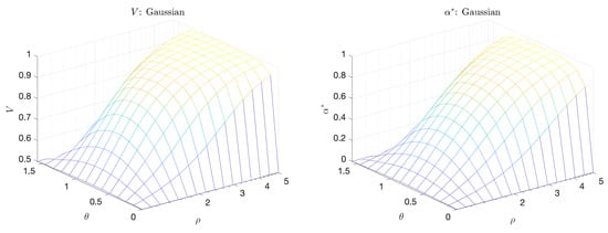Volume Under the Curve (V) (left) and Maximum Adjusted Area Under the Curve () (right) for the Gaussian scenario.