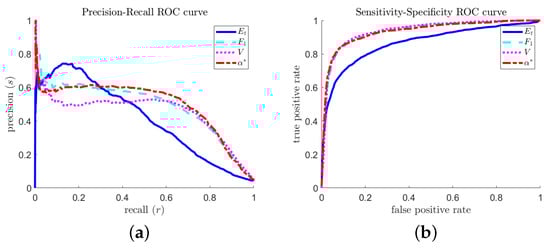 - Takaya Saito, M.R. The Precision-Recall Plot Is More Informative than the ROC Plot When Evaluating Binary Classifiers on Imbalanced Datasets. PLoS ONE 2015, 10, 1–21. [Google Scholar]